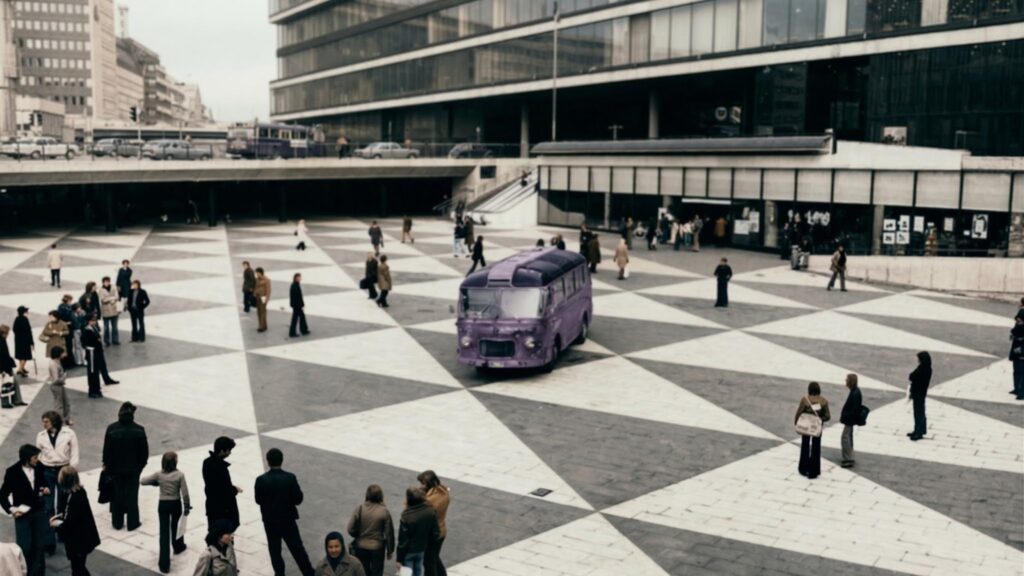 Modern mimariden ilhamla inşa edilen Sergels Meydanı, günümüzde hâlâ estetik geçerliliğini korur. Siyah & beyaz üçgenlerle donatılmış ikonik meydanın ortasında umuda yolculuğun en umutsuz unsuru otobüsün suratsızlığı yine kötü yönetilen bir ülkenin fiziksel sonuçlarına benzetilebilir. Ne kadar çirkin, yaşanmaz, katlanılmaz olsa da konfor alanından ayrılan otobüs vatandaşları, günün sonunda elenmeye mahkûmdurlar. Çünkü kimliksiz bakışları onları temel arayışlara sürüklemiştir. Açlıkları dolayısıyla şaşkın ve korkakça her yolu denerlerken kendilerini ve donarak ölen yoldaşlarını unuturlar. Bu korku nöbetlerinde insanların, polislerin, işçilerin hatta vitrin mankenlerinin gözleri hapsindeyken medeniyetin metal yokuşu; yürüyen merdivenleri tersten çıkmaları çok görülmemeli. Zaman tasavvurunda Augustinus’u haklı çıkaran otobüs ve yolcuları, medeniyetin dal ortasında kendi zamanına yenik düşerler.